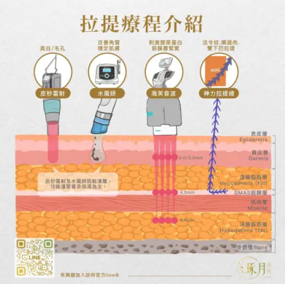 隨著年齡增長,膠原蛋白與彈力纖維流失,不同的拉提療程,能針對不同層次老化精準改善。