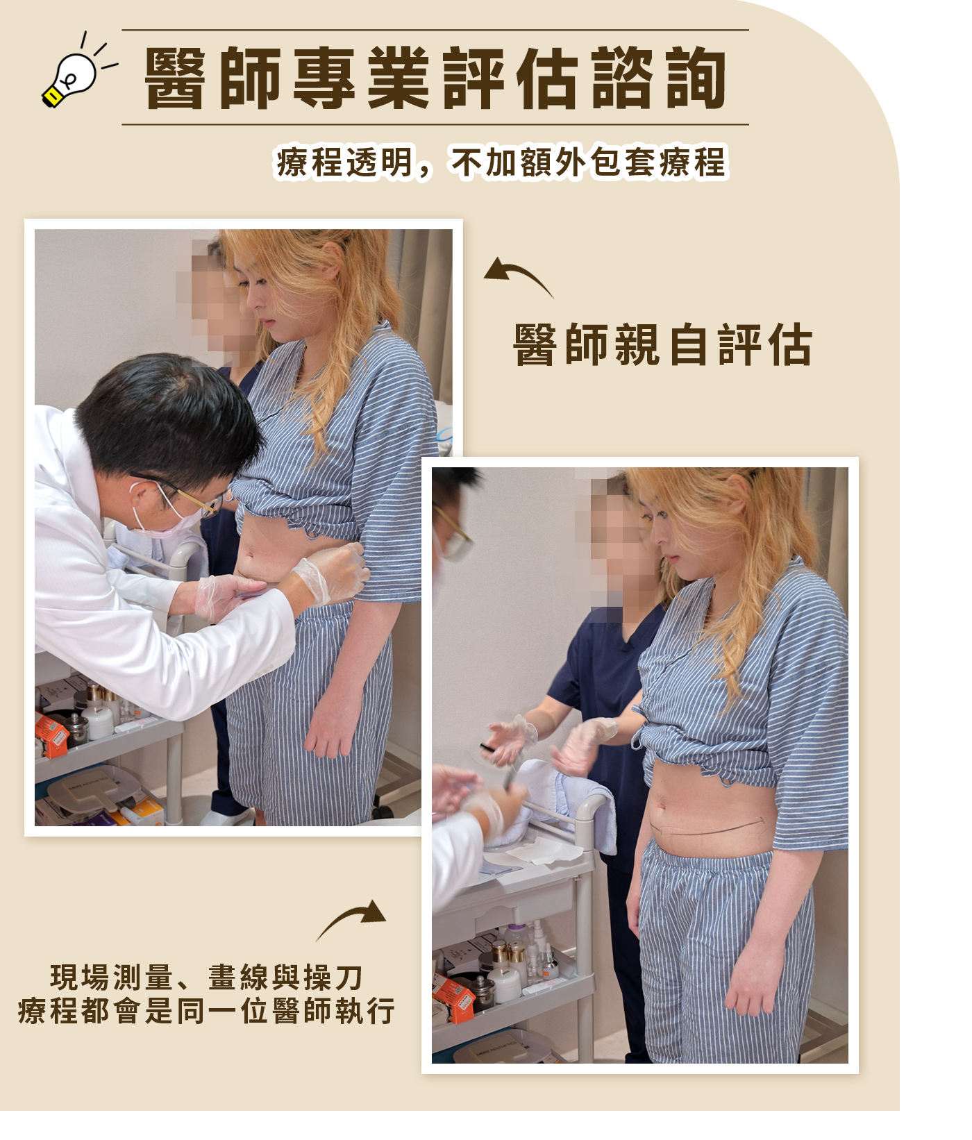 1.專業醫師評估 → 針對脂肪厚度與部位,確認是否適合冷凍減脂