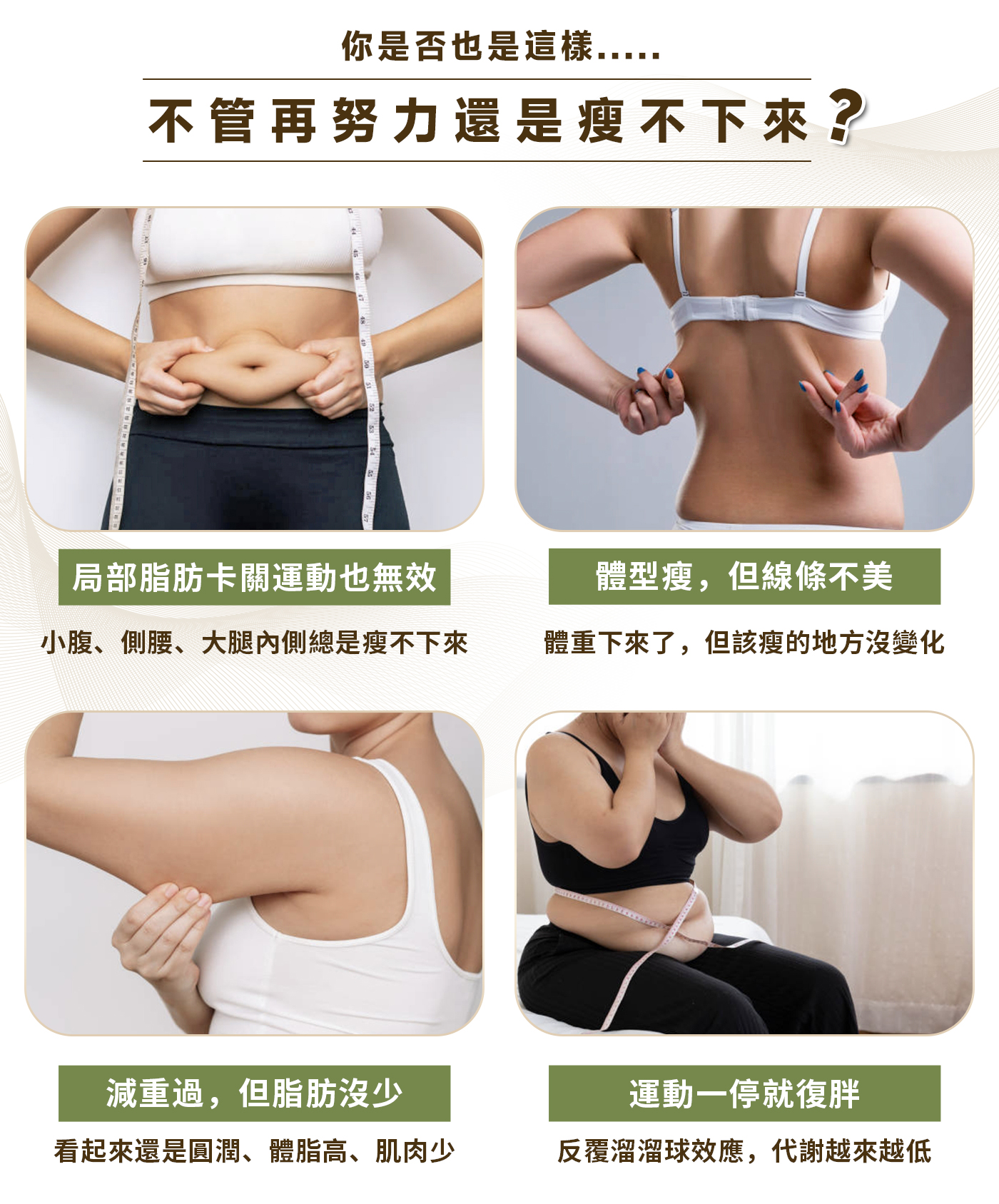 •逐步顯現:脂肪細胞代謝需要時間,通常 2~4 個月 可看到線條變化
